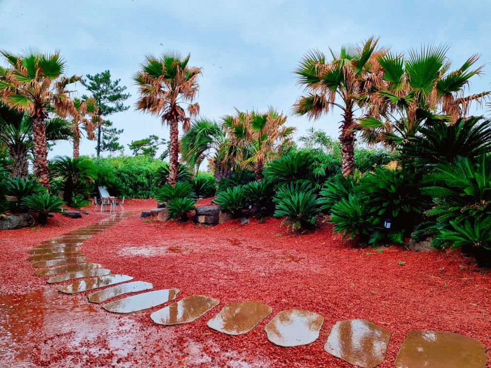 아담하게 조성된 정원에서 제주스러움을 한껏 느끼며, 나름 운치 있는 빗길 산책을 했습니다.