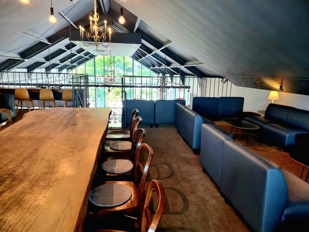 넓은 테이블에 같이 앉을 수 있는 회의석 같은 테이블이 있어요.