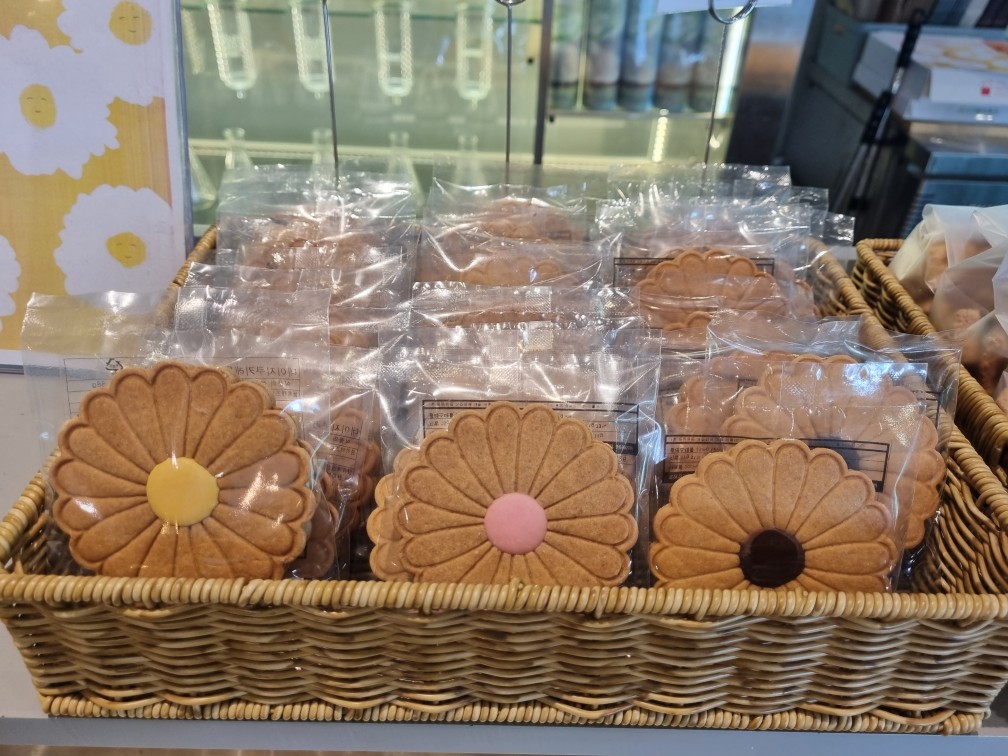 요즘, 커피 컵 위에 이 쿠키를 얹어서 꽃밭을 배경으로 사진 찍는 게 인기인 것 같아요.
